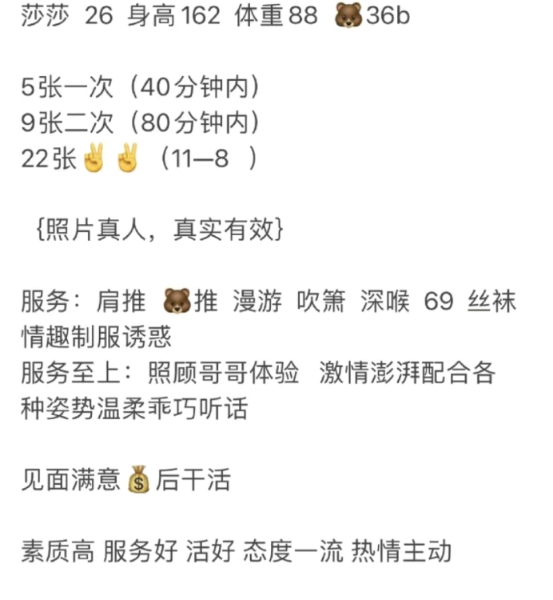价格便宜400块,全套服务 性价比高,小姐也温柔 卸货的选择不错,小黄文也不会写 常熟发出来的都是大妈 ...