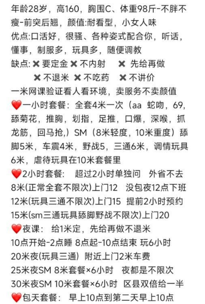 颜值很有日像,皮肤白嫩细滑,态度骚气随和,做爰呻吟声很有诱惑力,服务认真仔细,服务一流,毒龙一流, ...